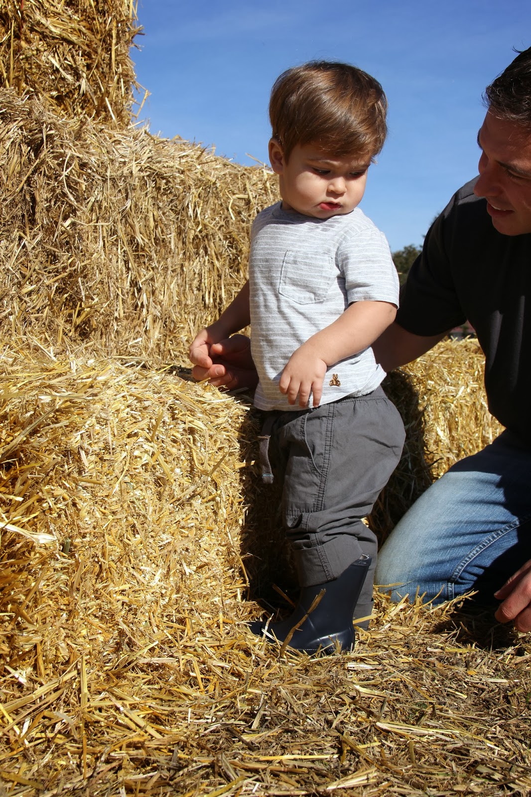 Gabe and I were very excited to take Sam to the pumpkin patch this past weekend. We have discovered that one of the best things about having kids is having an excuse to participate in activities that you’ve secretly always enjoyed but couldn’t do before because we were childless and it would have been weird . Pumpkin Patches fall into this category. So do petting zoos. Oh, and public pools. Kinda weird for two grown adults to want to hang out at any of these places. Throw a kid into the mix and Ta-Da! Instant acceptance.